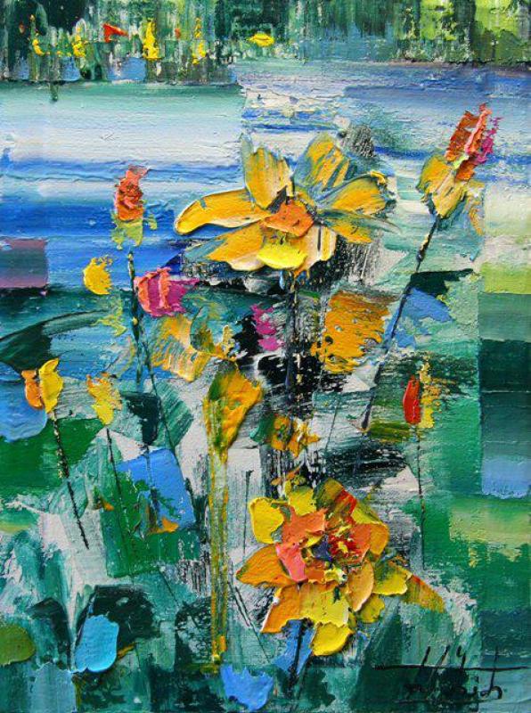 Я желаю поделиться со зрителем радостным чувством открытия нового, чудом преображения эмоций в живопись, когда все окружающее словно блестит на солнце, омытое коротким и бурным летним ливнем, и превращается в яркие пятна цвета, в радость, и воздух напоен озоном.