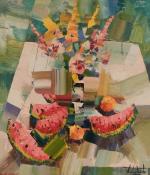 Название выставки - «Солнцем полна голова». Так когда-то назвал свою биографию Ив Монтан, и эти же слова может повторить Харабадзе, когда-то давно приехавший в наш город из Грузии, но не утративший солнечный, теплый взгляд на жизнь, несмотря на все дожди и тучи Петербурга. Что бы ни изображал художник - крымские пейзажи, улицы Петербурга, лица друзей, цветы - все пропитано солнечным светом, атмосферой тепла, энергией жизни. Картины Зазы, как радушные хозяева, приглашают зрителя войти в свой внутренний мир, где щедрость души художника всех согреет и всем подарит радость.
